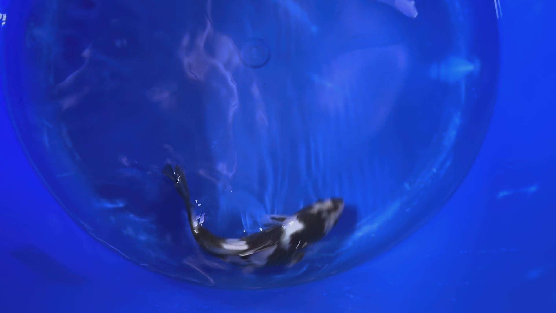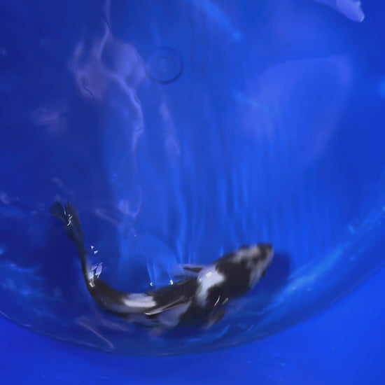Prachtige Shiro Utsuri (Tosai, 29 cm) van de beroemde Omosako Koi Farm. Een koi met kwaliteit en groeipotentie.