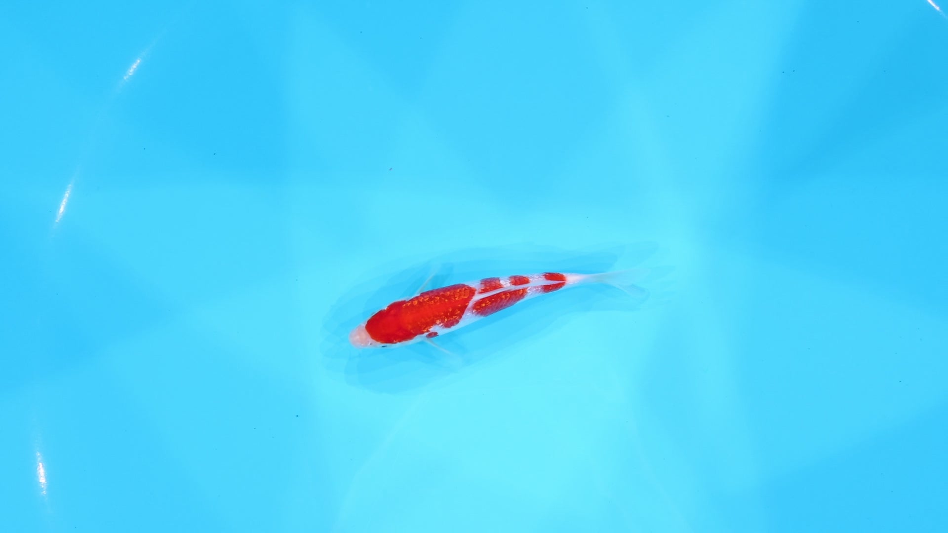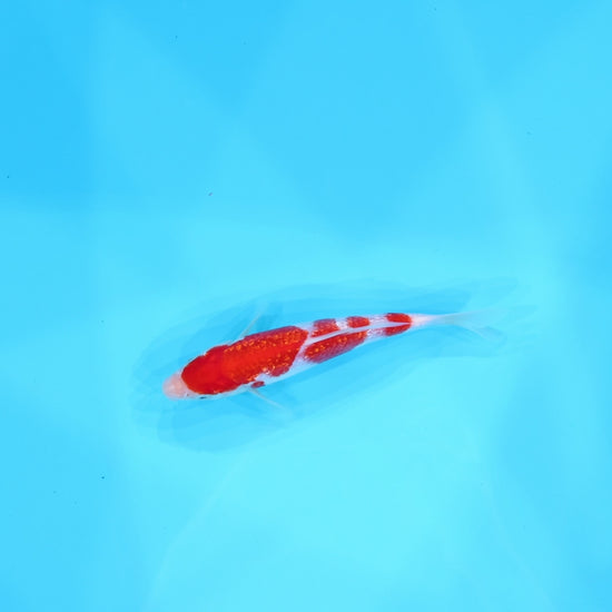 Prachtige Ginrin Kohaku (Tosai, 17 cm) van de beroemde van Taiguchi Koi Farm. Een koi met kwaliteit en groeipotentie.